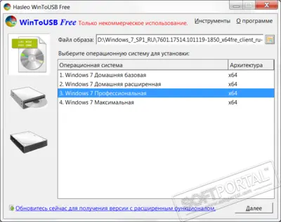 WinToUSB поддерживает работу с различными типами образов и источников операционной системы. Для создания переносной Windows можно использовать: