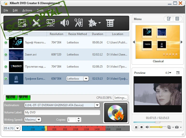 С помощью программы можно конвертировать видео в формат DVD и записывать его на диск для последующего просмотра на большинстве бытовых DVD-плееров. Xilisoft DVD Creator поддерживает множество популярных форматов видео, что позволяет объединять различные видеоролики в одном проекте без сложной предварительной подготовки.