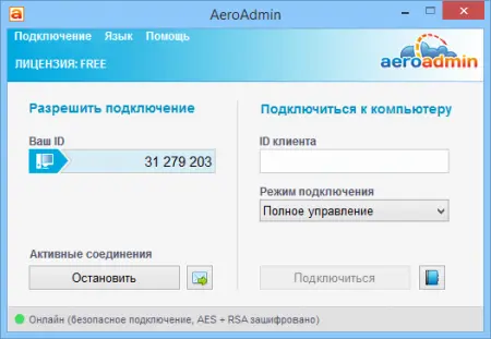 Утилита не требует установки и запускается как портативное приложение. Для подключения необходимо ввести уникальный ID, который автоматически присваивается каждой копии программы. Доступны два режима работы: