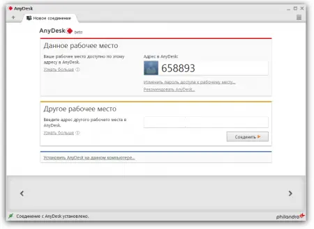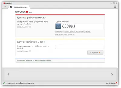 Подключение осуществляется через персональный идентификатор устройства (ID) и пароль. Эти данные передаются пользователю любым удобным способом, после чего устанавливается защищённый сеанс связи.