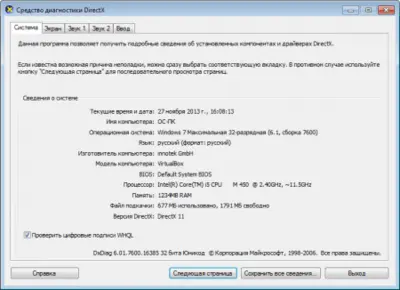 Где посмотреть версию программы DirectX 9.0c, 10.1, 11?