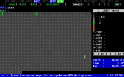 MHDD — компактная бесплатная утилита для диагностики и тестирования внешних и внутренних жёстких дисков. Программа выполняет проверку всей поверхности накопителя, а не только логических разделов, и работает напрямую с SATA/IDE-контроллерами.