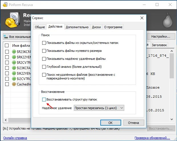 Если необходимо восстановить большое количество данных с сохранением исходной структуры папок, соответствующую опцию можно включить в настройках перед началом восстановления.