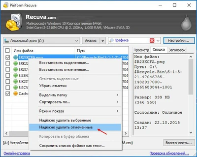 Для окончательного удаления достаточно отметить нужные файлы и выбрать соответствующую команду в контекстном меню.
