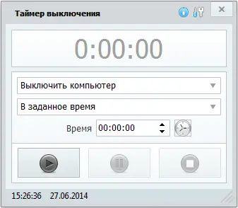 Таймер выключения — компактная утилита для автоматизации базовых действий на компьютере. Программа позволяет задать конкретное время или интервал, по истечении которого система выполнит выбранную команду: выключение, перезагрузку, блокировку или завершение сеанса.