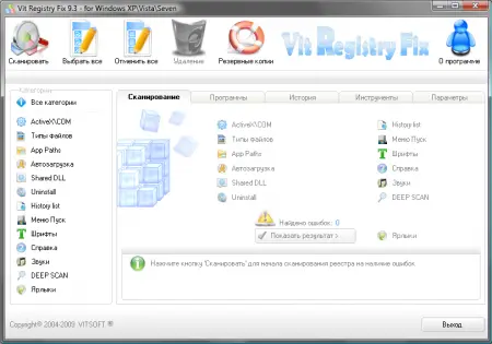 Приложение поддерживает автоматическое сканирование и способно обнаруживать более 50 типов ошибок в реестре. Анализ проводится по различным категориям, включая программные компоненты, системные библиотеки и ассоциации файлов.