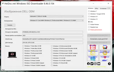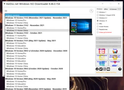 После запуска пользователь получает доступ к каталогу версий, дополнительным инструментам и справочным материалам. Программа позволяет выбрать язык образа, архитектуру (32-bit или 64-bit) и нужный выпуск системы.