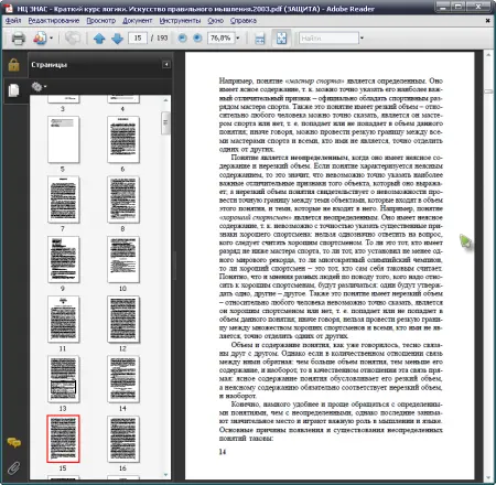 навигация по структуре файла (закладки, оглавление, миниатюры страниц);