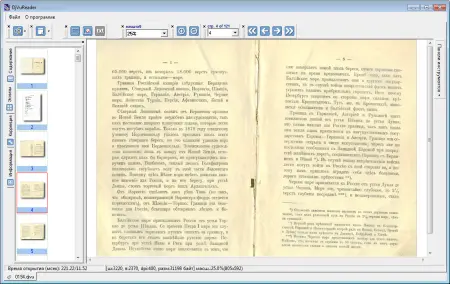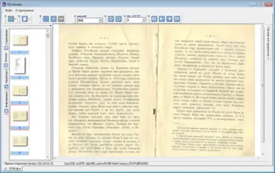 DjVuReader быстро запускается и практически мгновенно открывает даже объёмные файлы. Интерфейс программы интуитивно понятен и во многом напоминает браузер: документы можно открывать в отдельных вкладках и переключаться между ними.